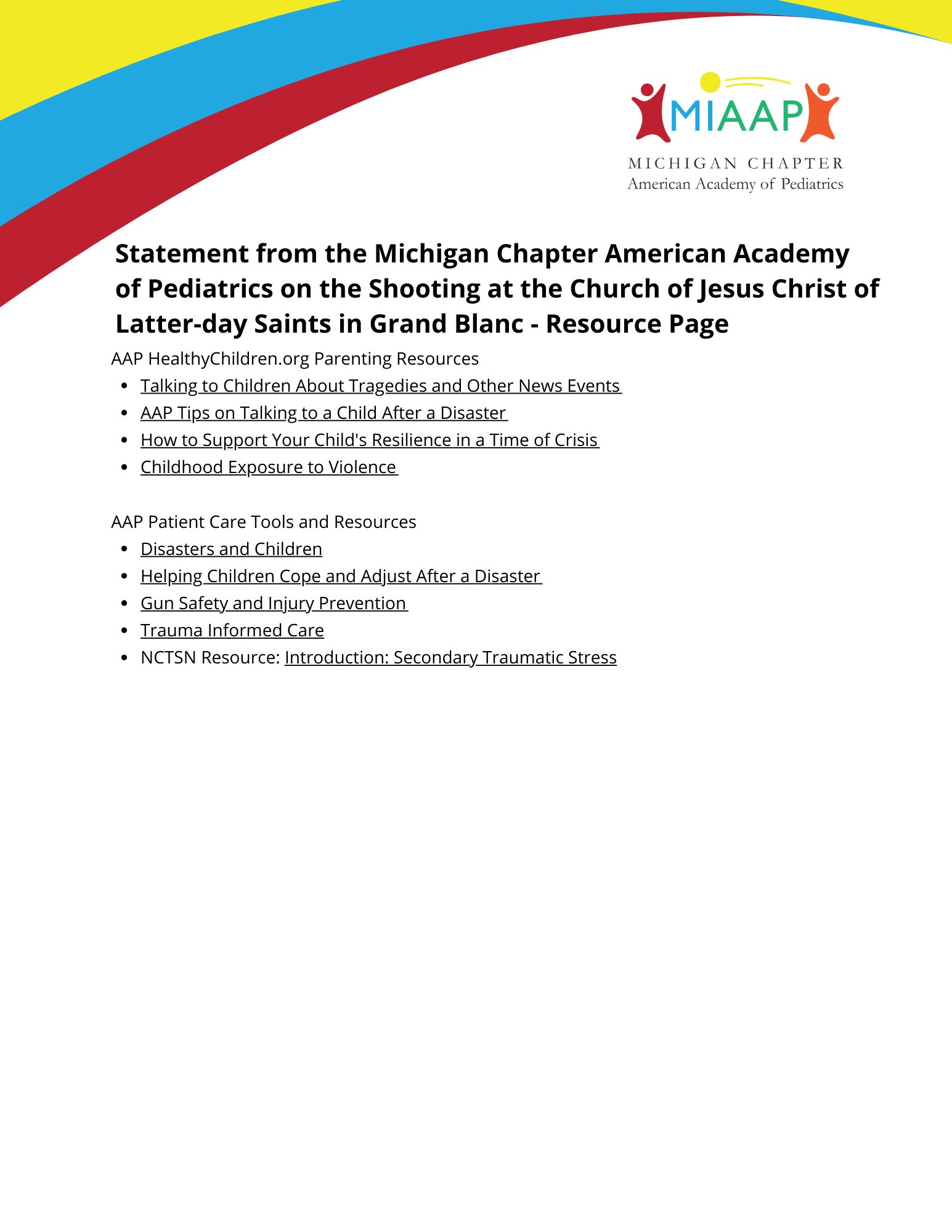 The Michigan Chapter of the American Academy of Pediatrics is committed to improving the physical, mental and social health of Michigan’s infants, children, adolescents and young adults; partnering with pediatric providers, parents and communities; and supporting members by increasing their engagement, education, and expertise.