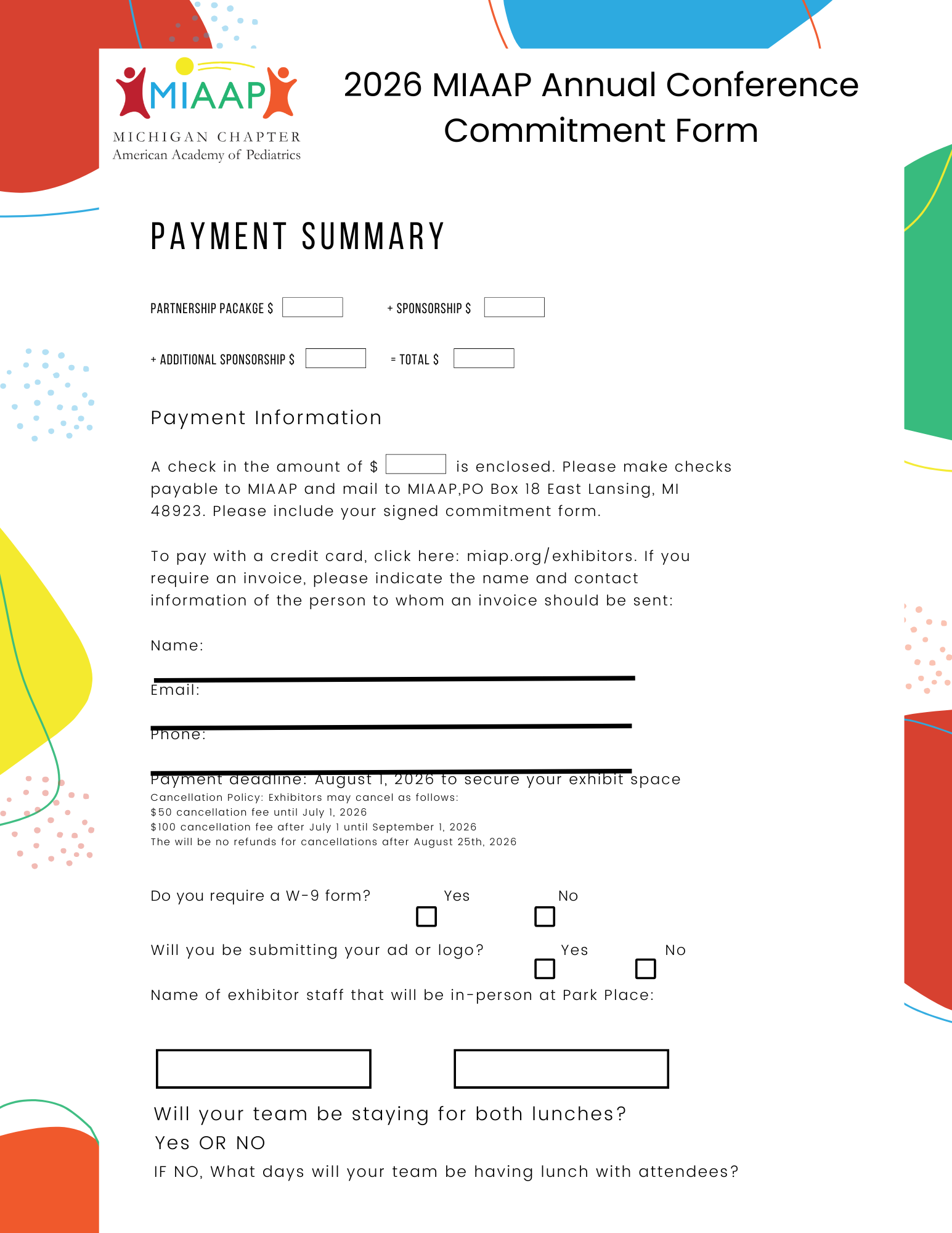 If you would like to exhibit or sponsor at the MIAAP Annual Conference please fill out the documents below and send via email to Emily Rambo at emily.rambo@miaap.org.